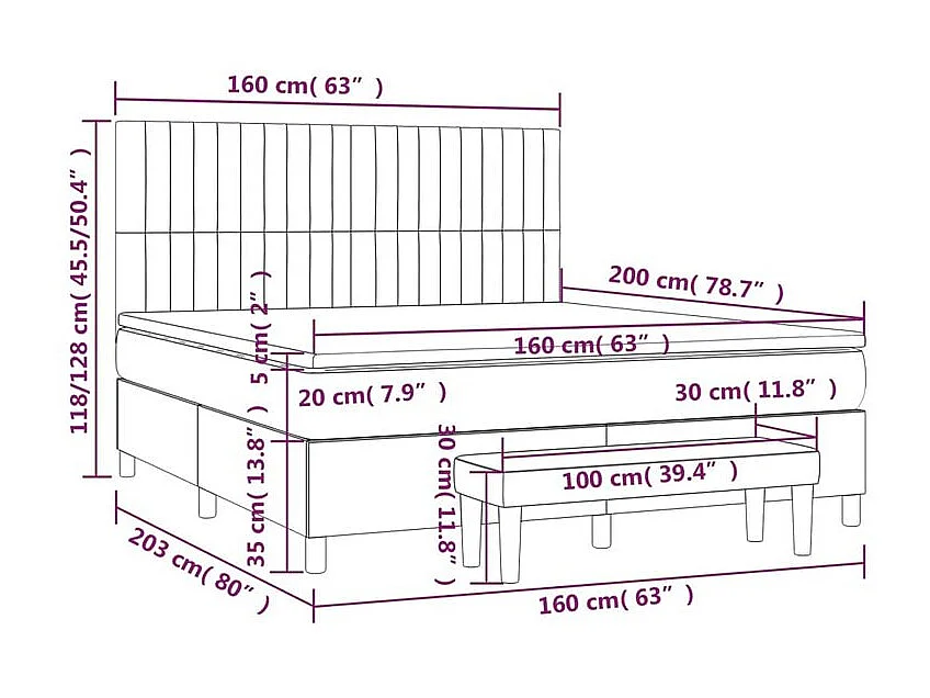 Sommier à lattes de lit avec matelas Gris clair 160x200 Tissu