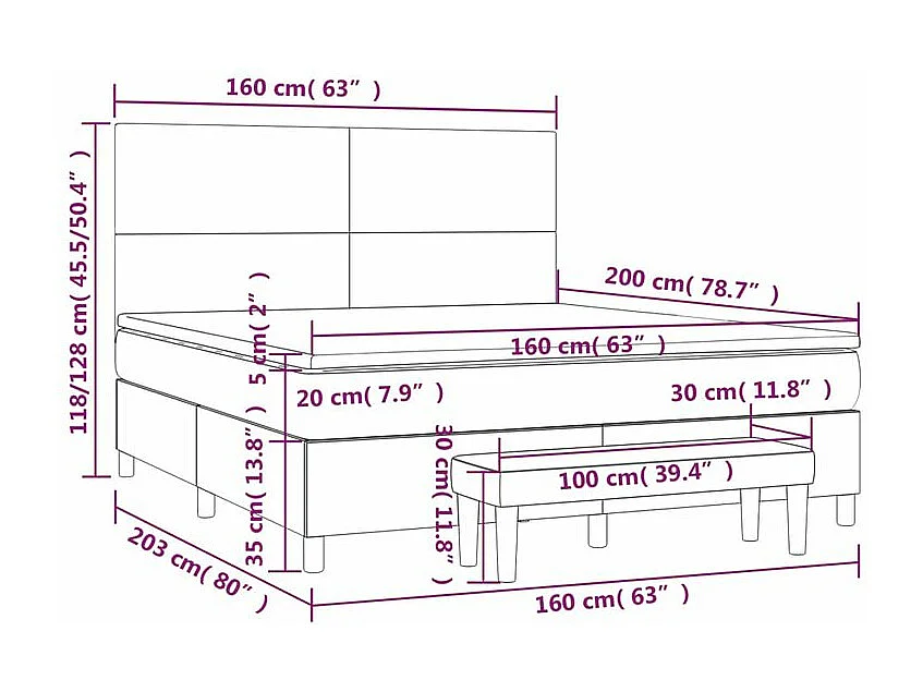 Sommier à lattes de lit avec matelas Gris clair 160x200 Tissu