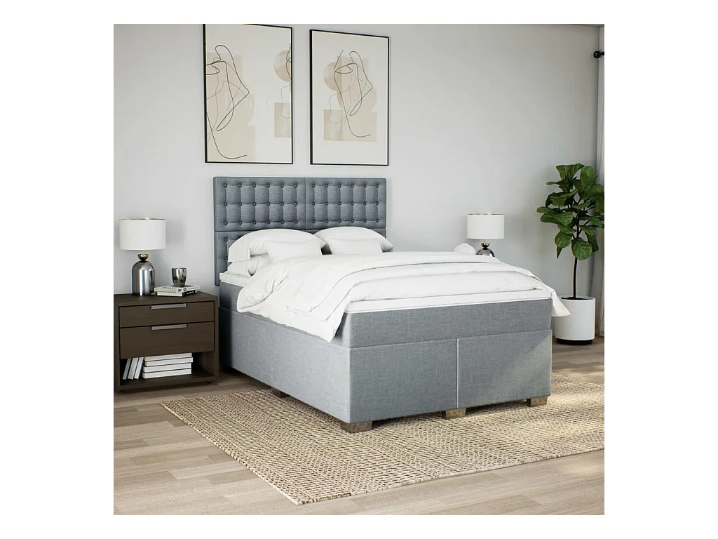 Sommier à lattes de lit avec matelas Gris clair 160x200cm Tissu