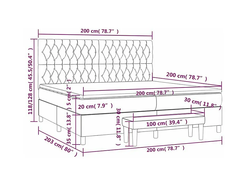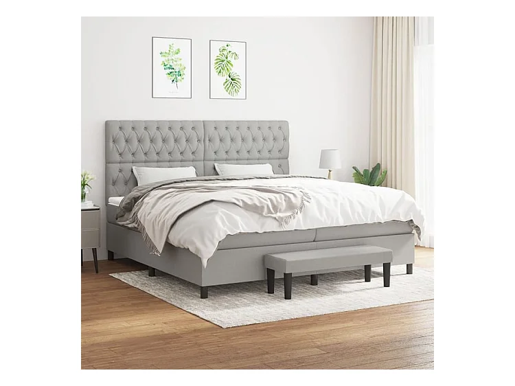 Sommier à lattes de lit avec matelas Gris clair 200x200 Tissu