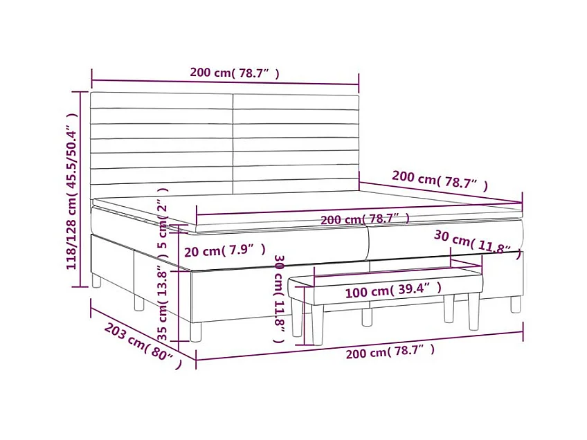 Sommier à lattes de lit avec matelas Gris clair 200x200 Tissu