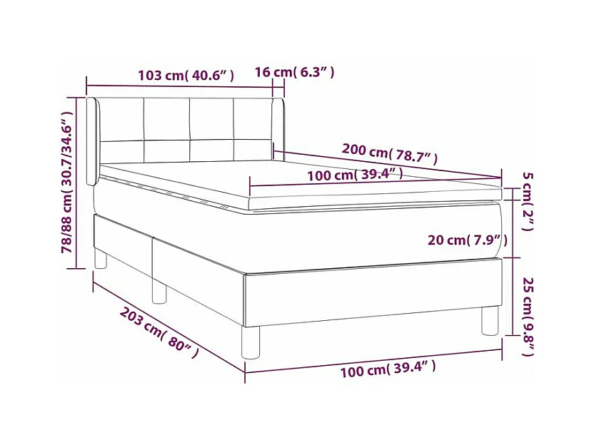 Sommier à lattes de lit avec matelas Gris foncé 100x200 Tissu