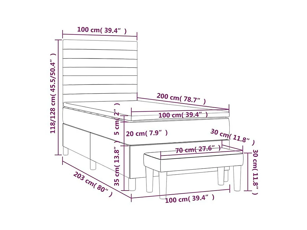 Sommier à lattes de lit avec matelas Gris foncé 100x200 Tissu