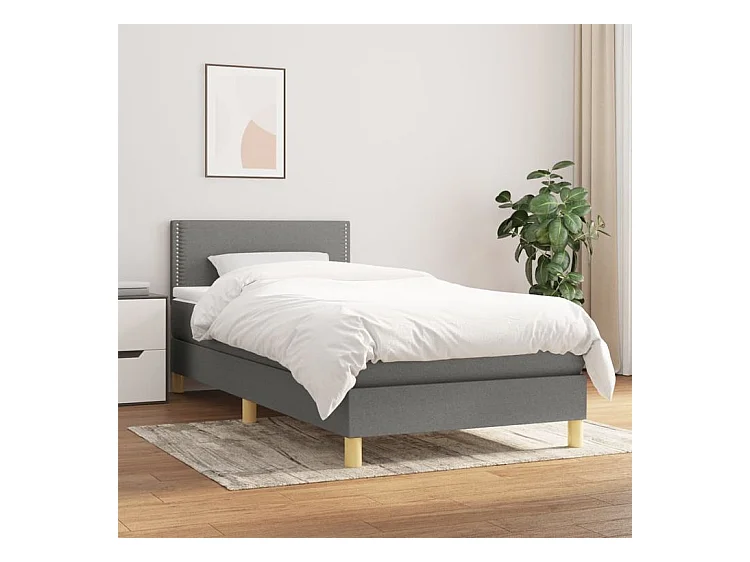 Sommier à lattes de lit avec matelas Gris foncé 100x200 Tissu