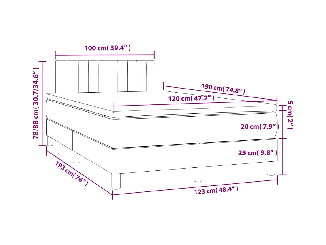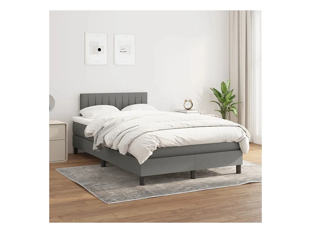 Sommier à lattes de lit avec matelas gris foncé 120x190 tissu
