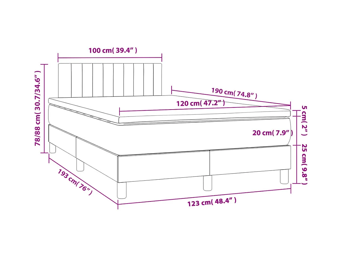 Sommier à lattes de lit avec matelas gris foncé 120x190 tissu