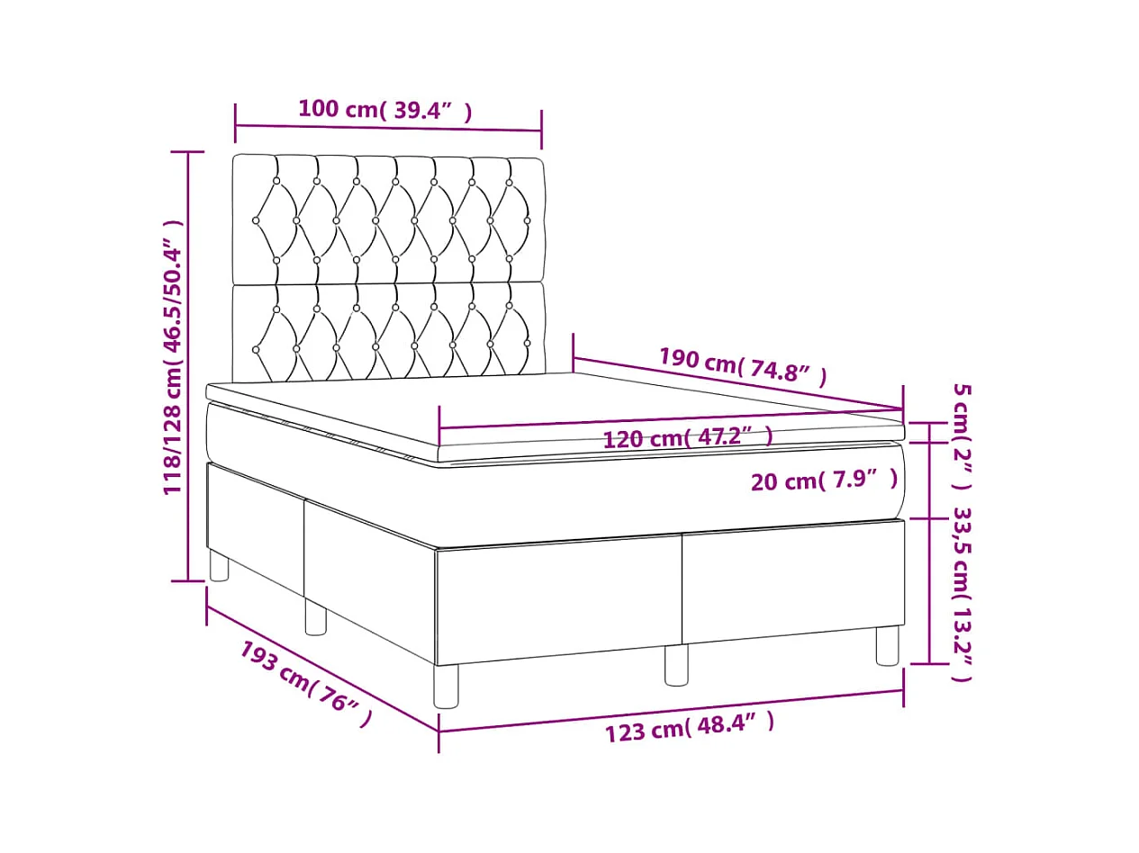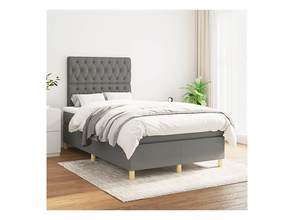 Sommier à lattes de lit avec matelas gris foncé 120x190 tissu