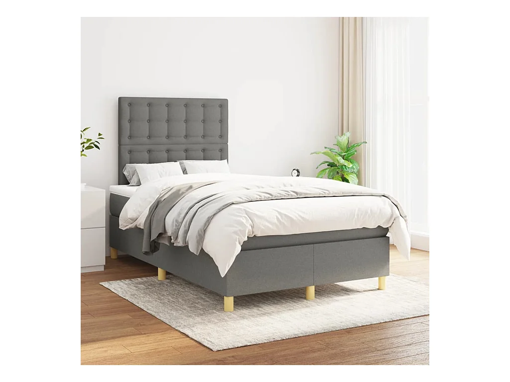 Sommier à lattes de lit avec matelas gris foncé 120x190 tissu