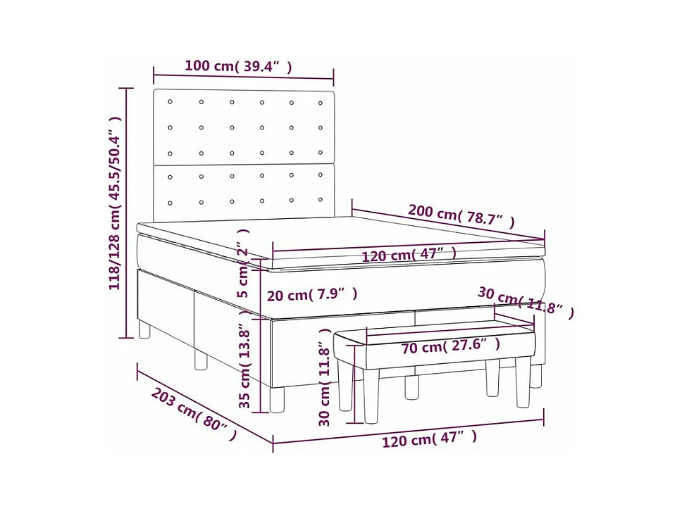 Sommier à lattes de lit avec matelas Gris foncé 120x200 Tissu