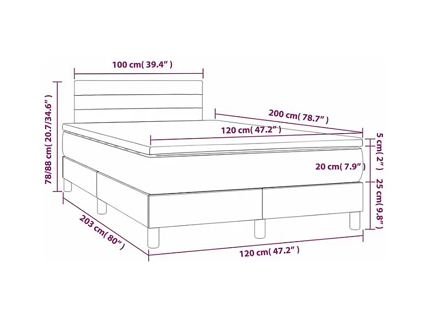 Sommier à lattes de lit avec matelas Gris foncé 120x200 Tissu