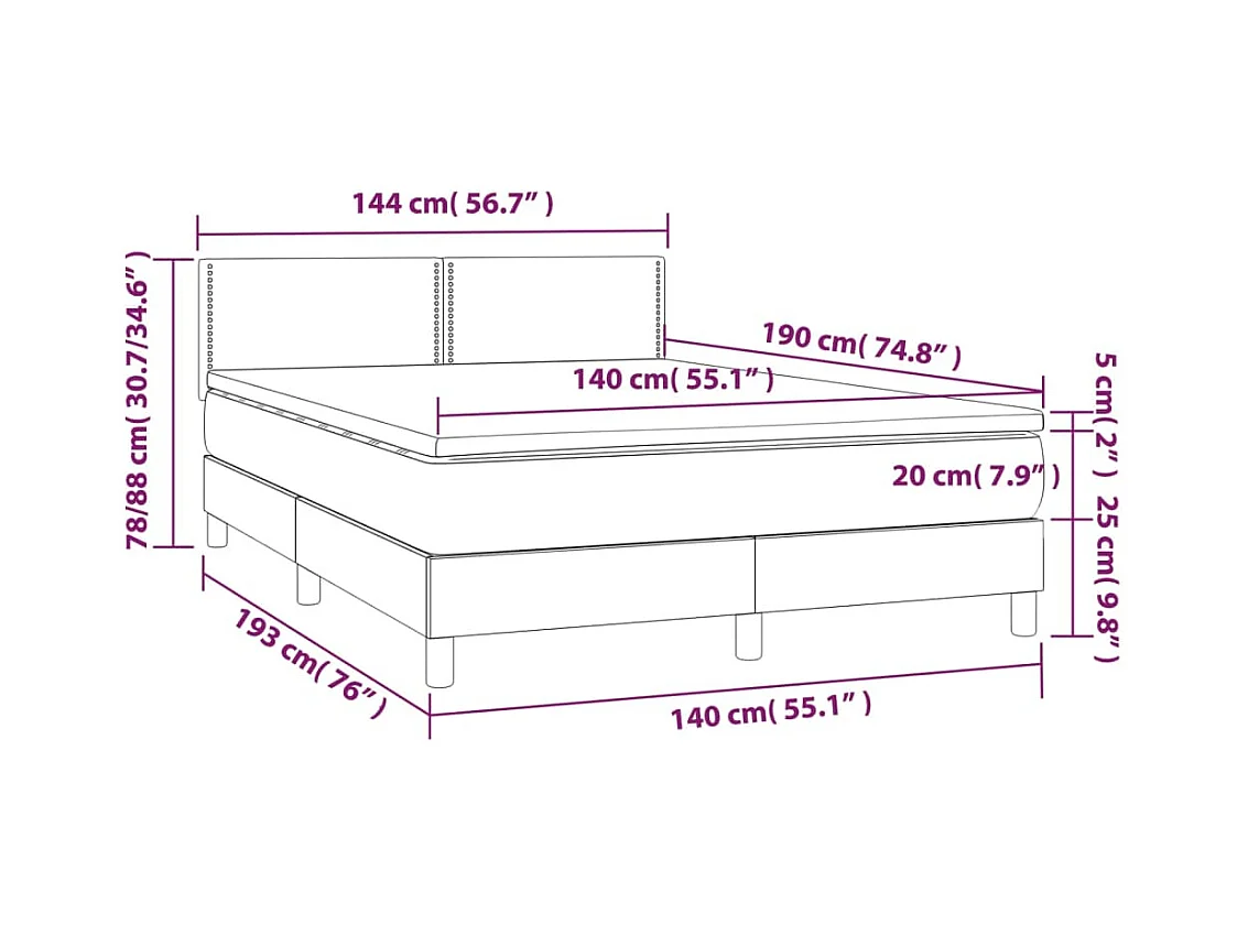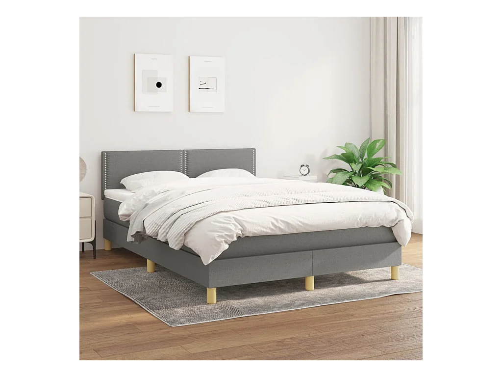 Sommier à lattes de lit avec matelas Gris foncé 140x190 Tissu