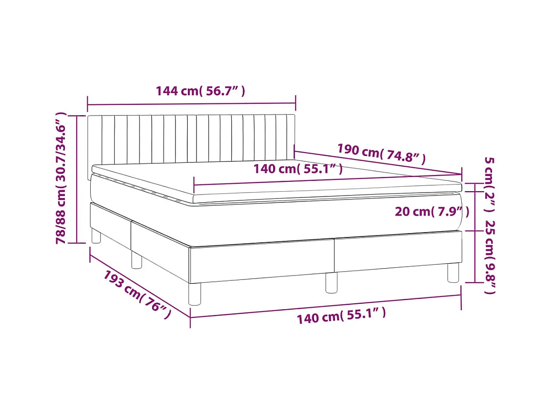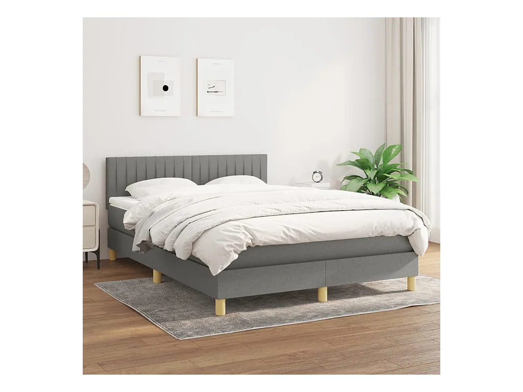 Sommier à lattes de lit avec matelas Gris foncé 140x190 Tissu