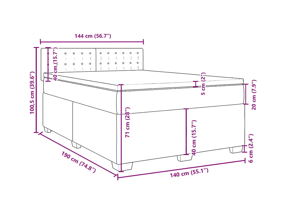 Sommier à lattes de lit avec matelas Gris foncé 140x190cm Tissu