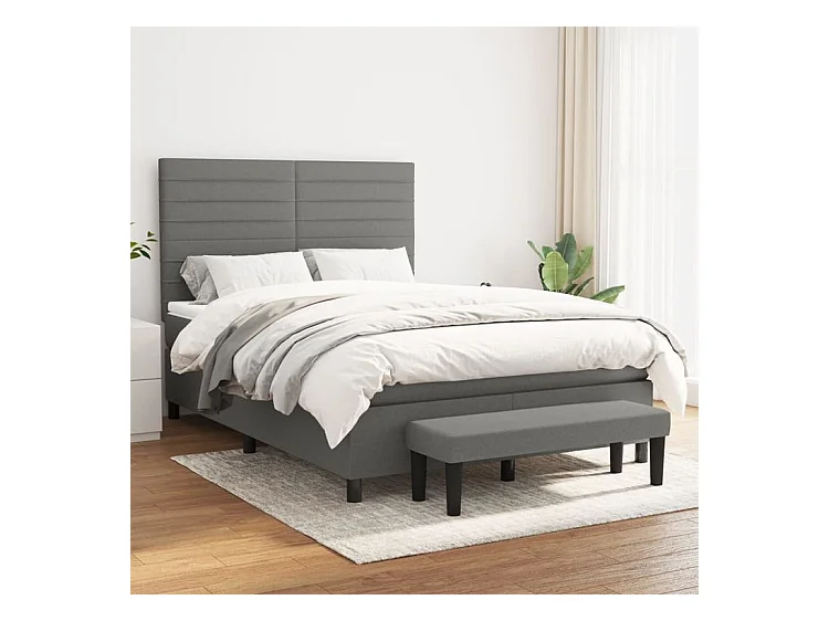 Sommier à lattes de lit avec matelas Gris foncé 140x200 Tissu