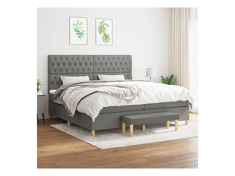 Sommier à lattes de lit avec matelas Gris foncé 200x200 Tissu