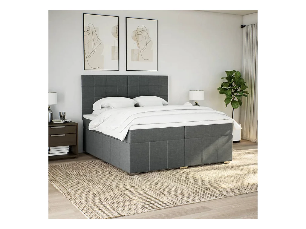 Sommier à lattes de lit avec matelas Gris foncé 200x200cm Tissu