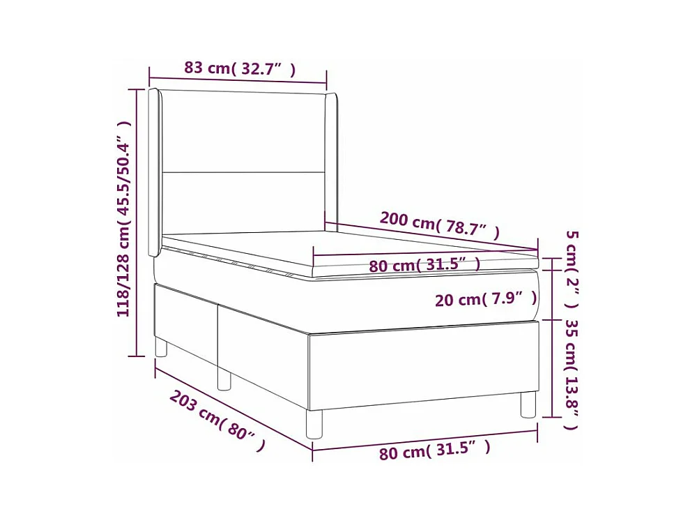 Sommier à lattes de lit avec matelas Gris foncé 80x200 Tissu
