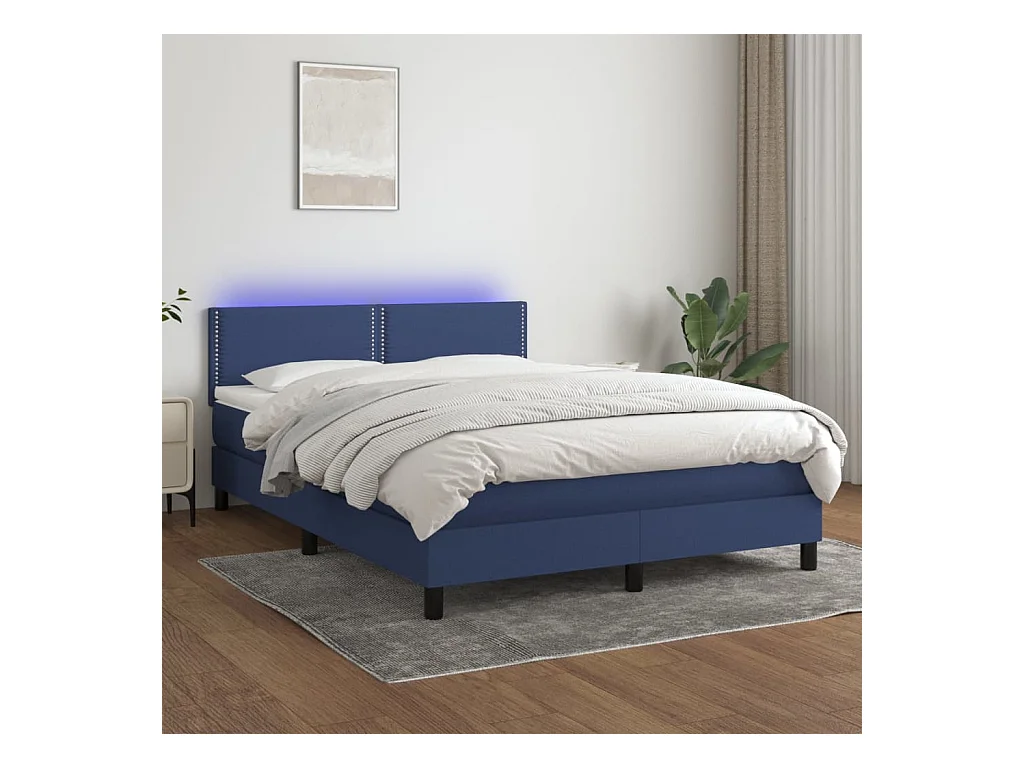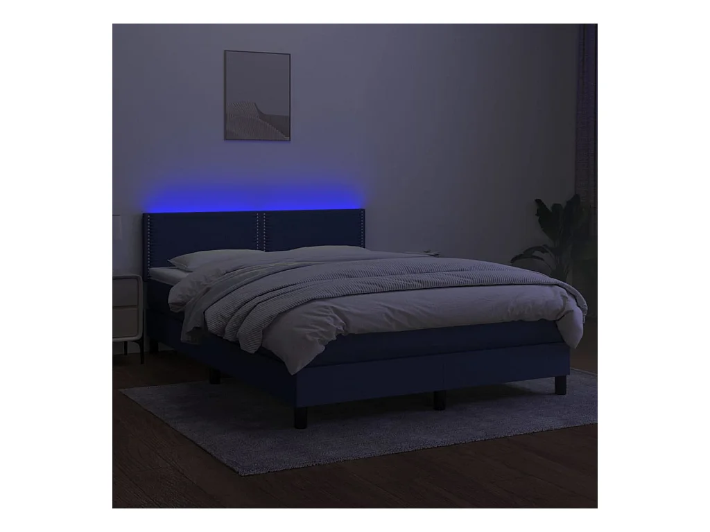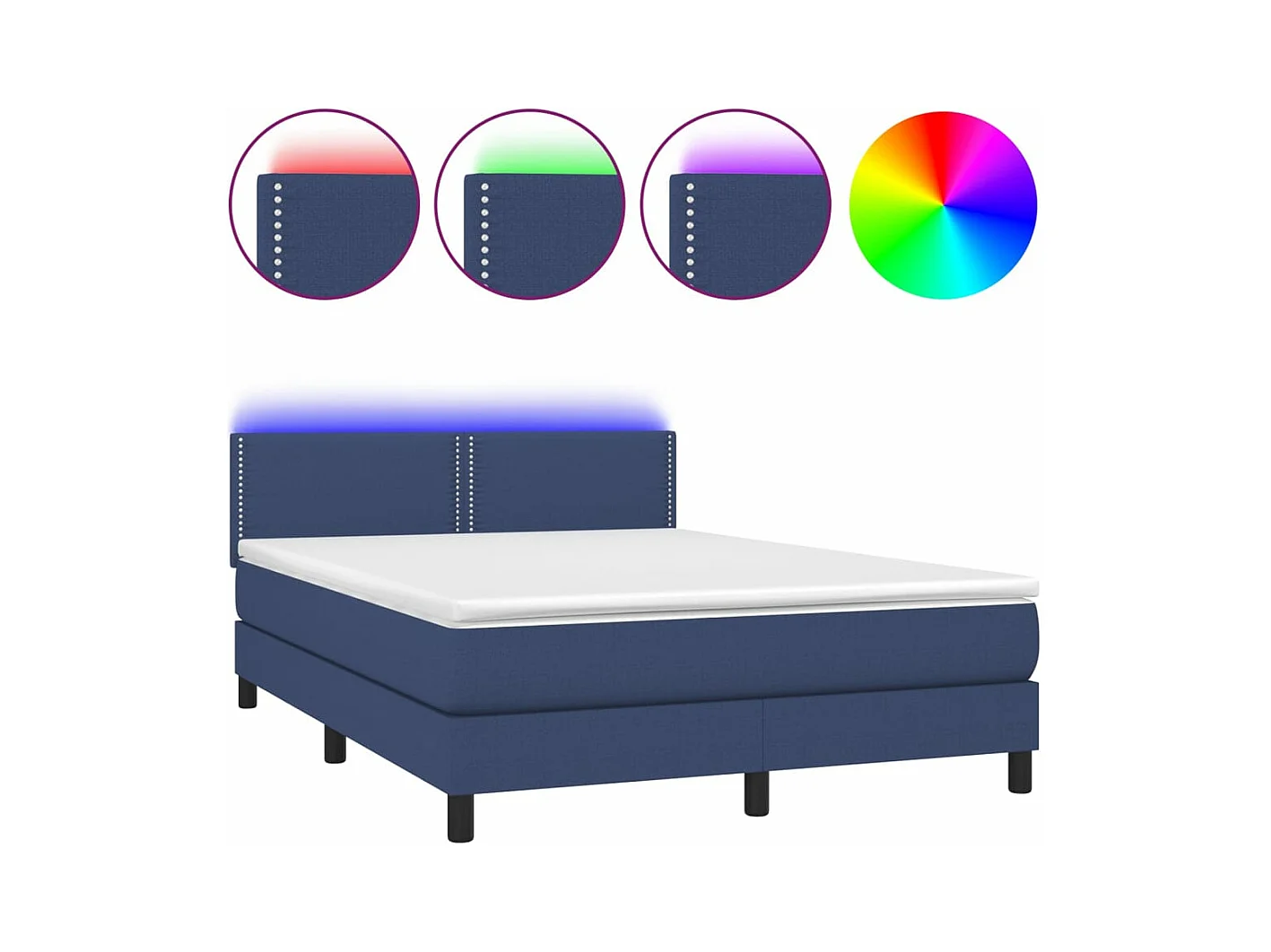 Sommier à lattes de lit avec matelas LED Bleu 140x190 Tissu