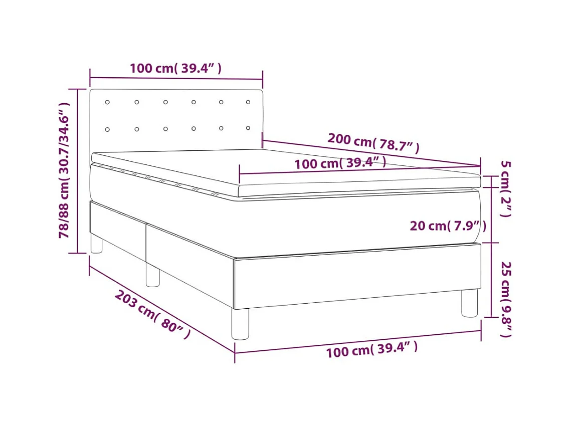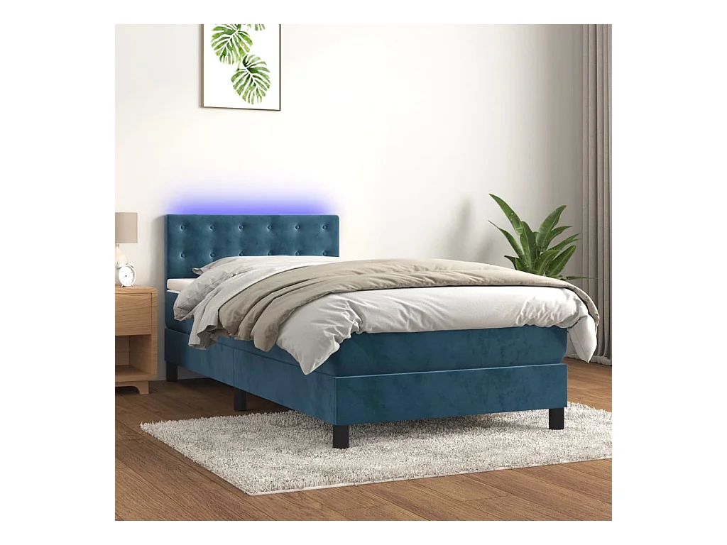 Sommier à lattes de lit avec matelas LED Bleu foncé 100x200