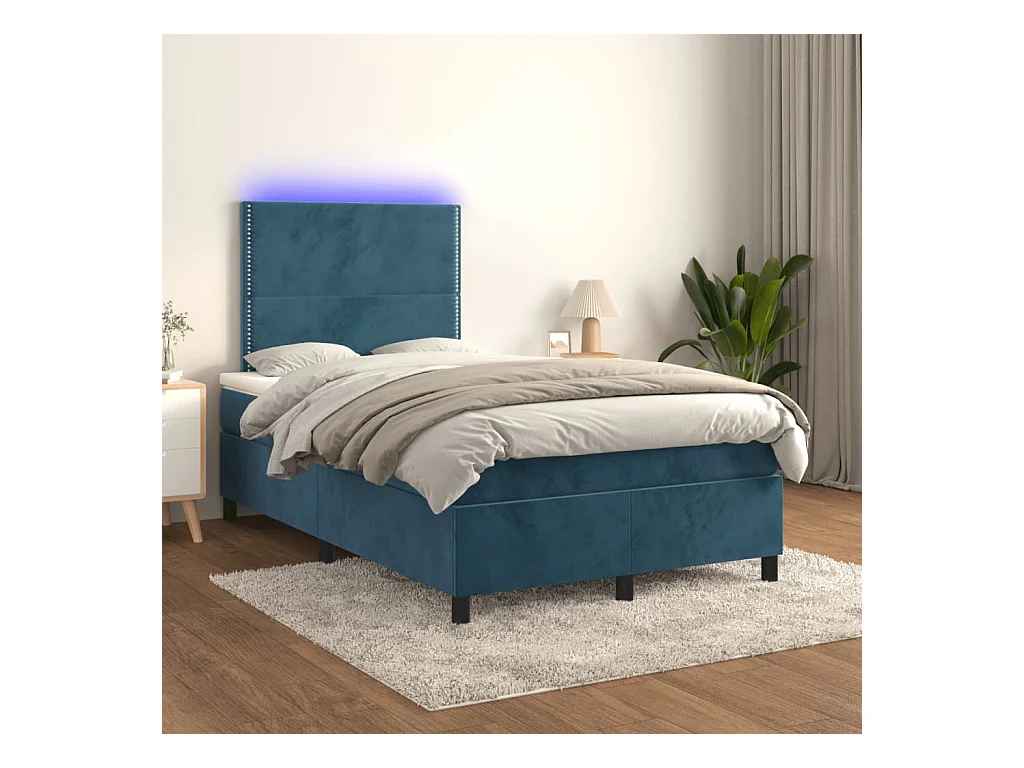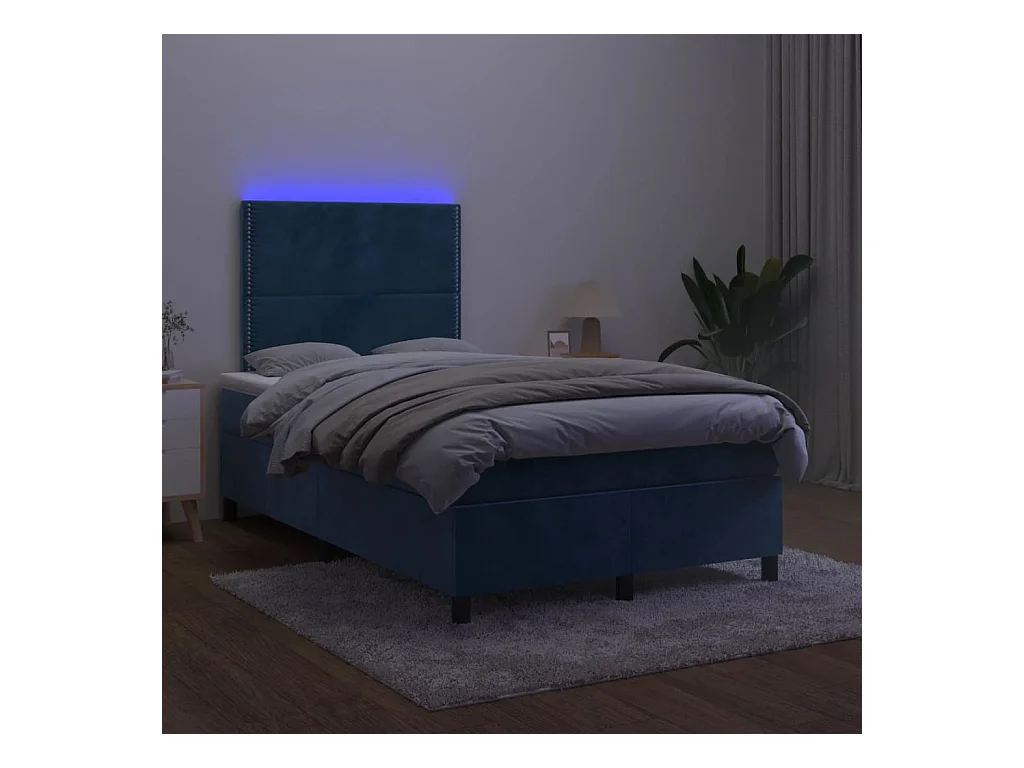 Sommier à lattes de lit avec matelas LED bleu foncé 120x190