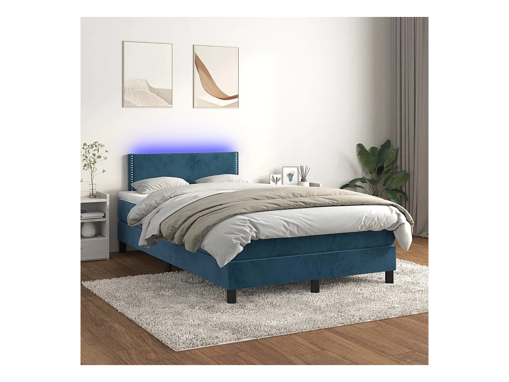 Sommier à lattes de lit avec matelas LED bleu foncé 120x190