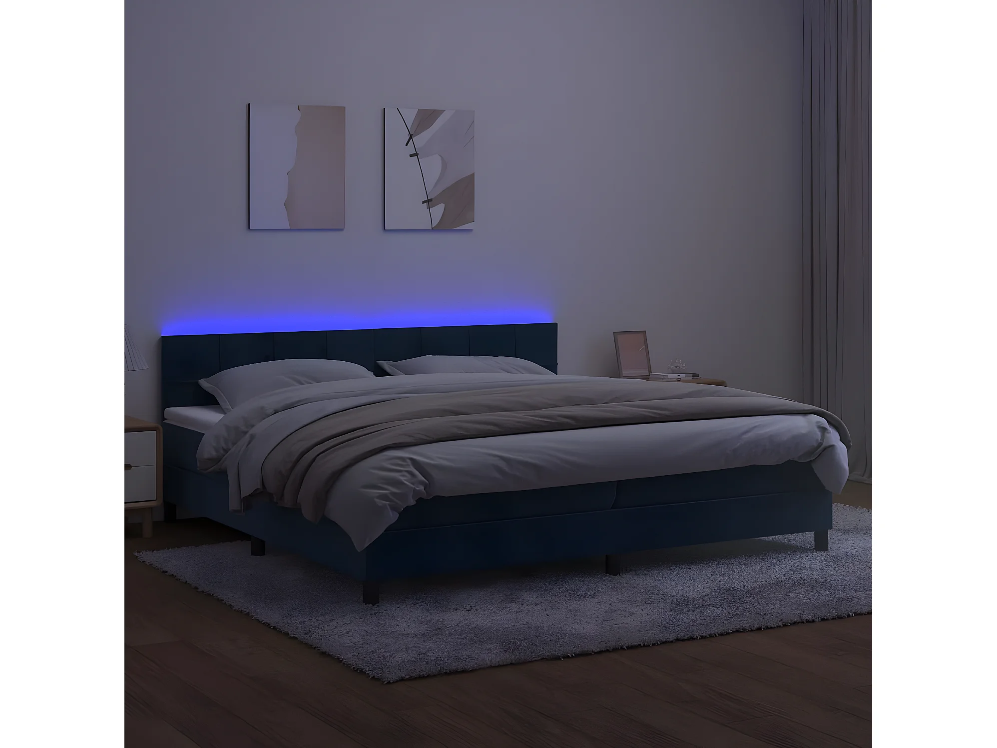 Sommier à lattes de lit avec matelas LED Bleu foncé 200x200