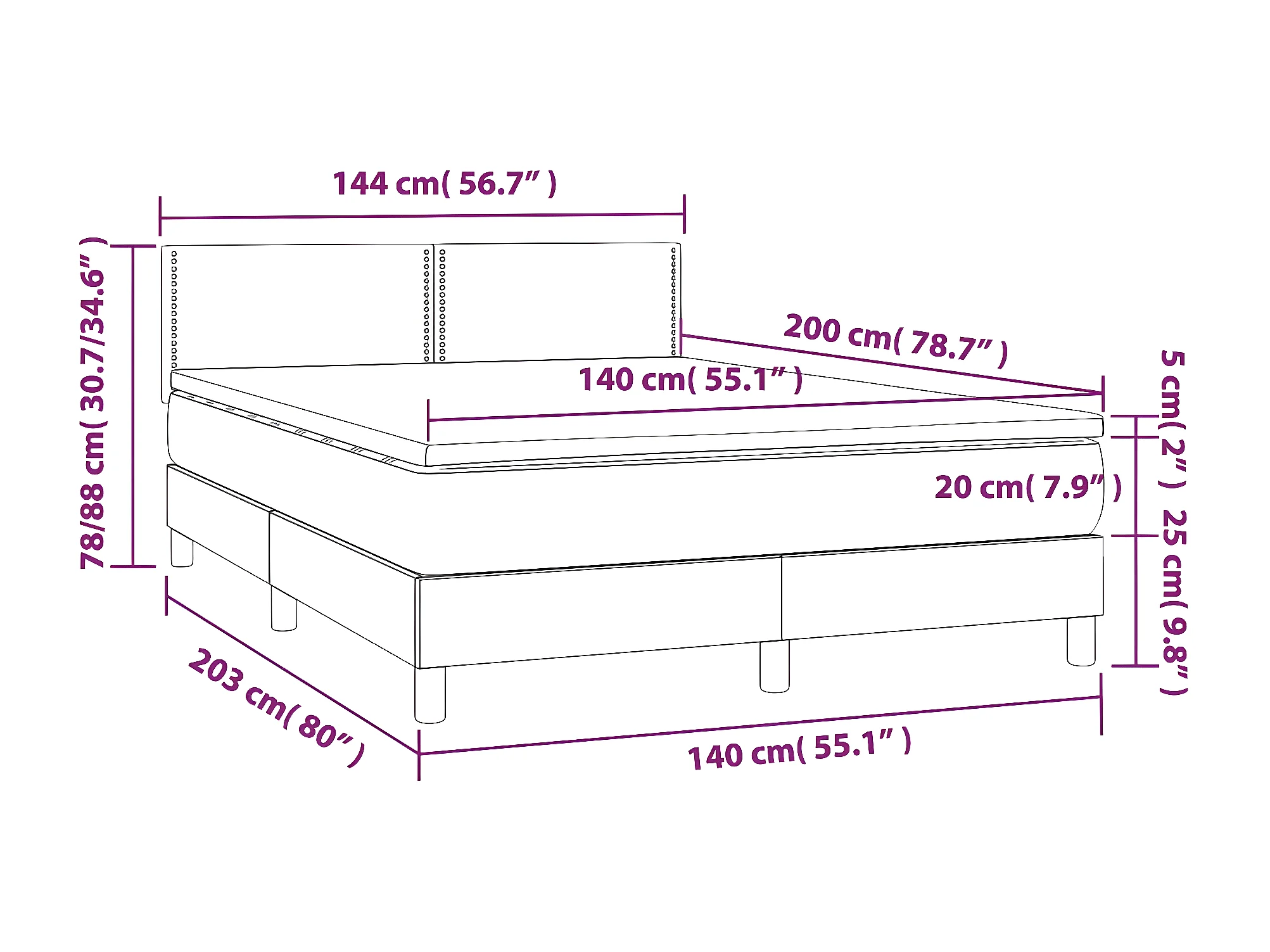Sommier à lattes de lit avec matelas LED Cappuccino 140x200