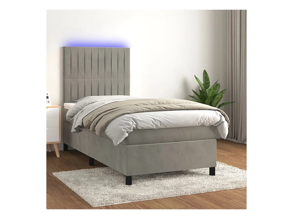 Sommier à lattes de lit avec matelas LED Gris clair 100x200