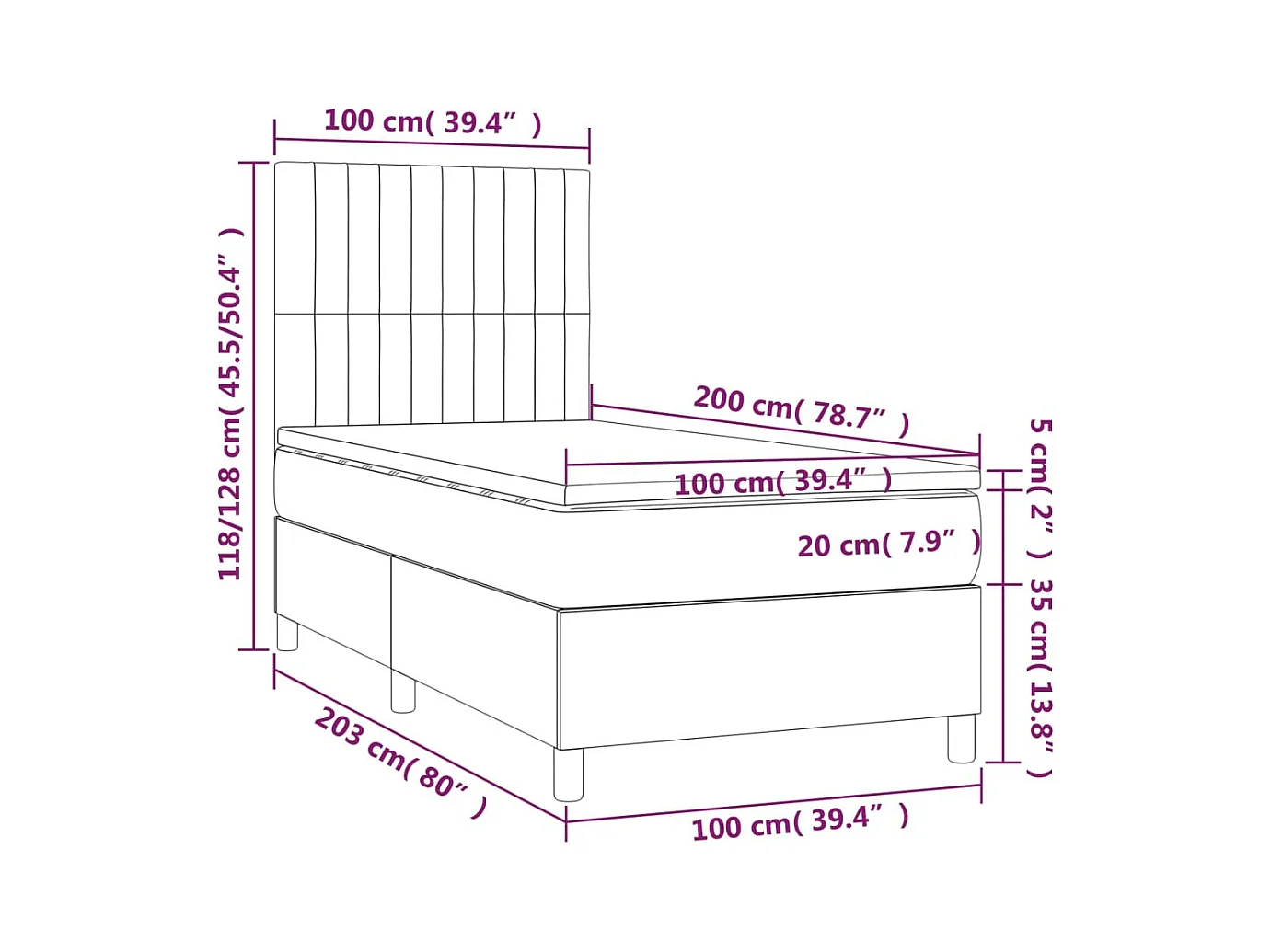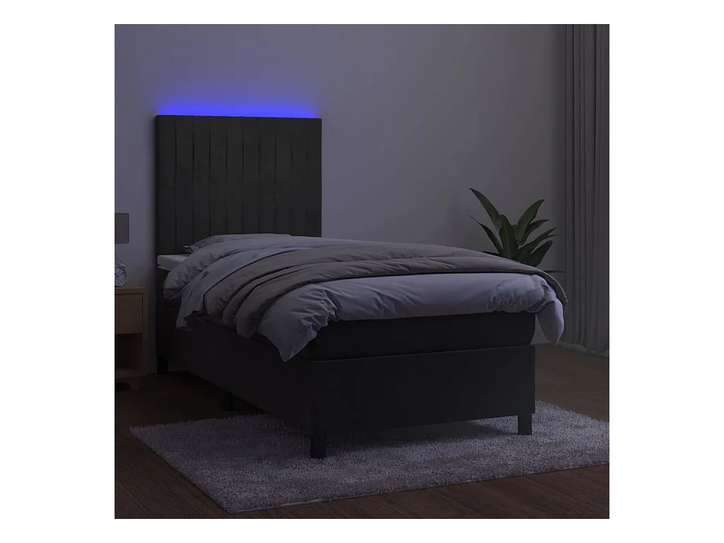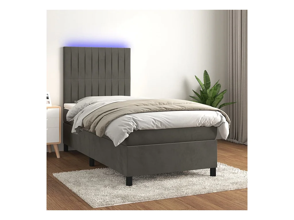Sommier à lattes de lit avec matelas LED Gris foncé 100x200