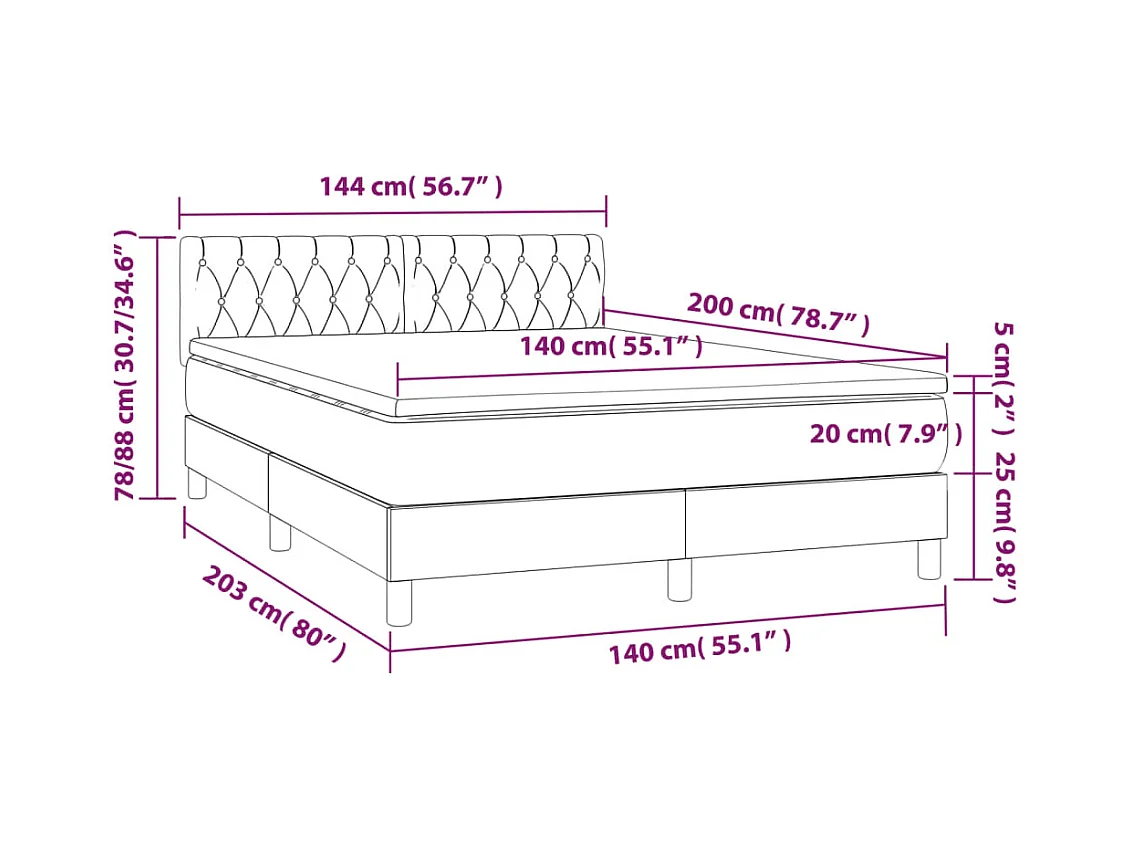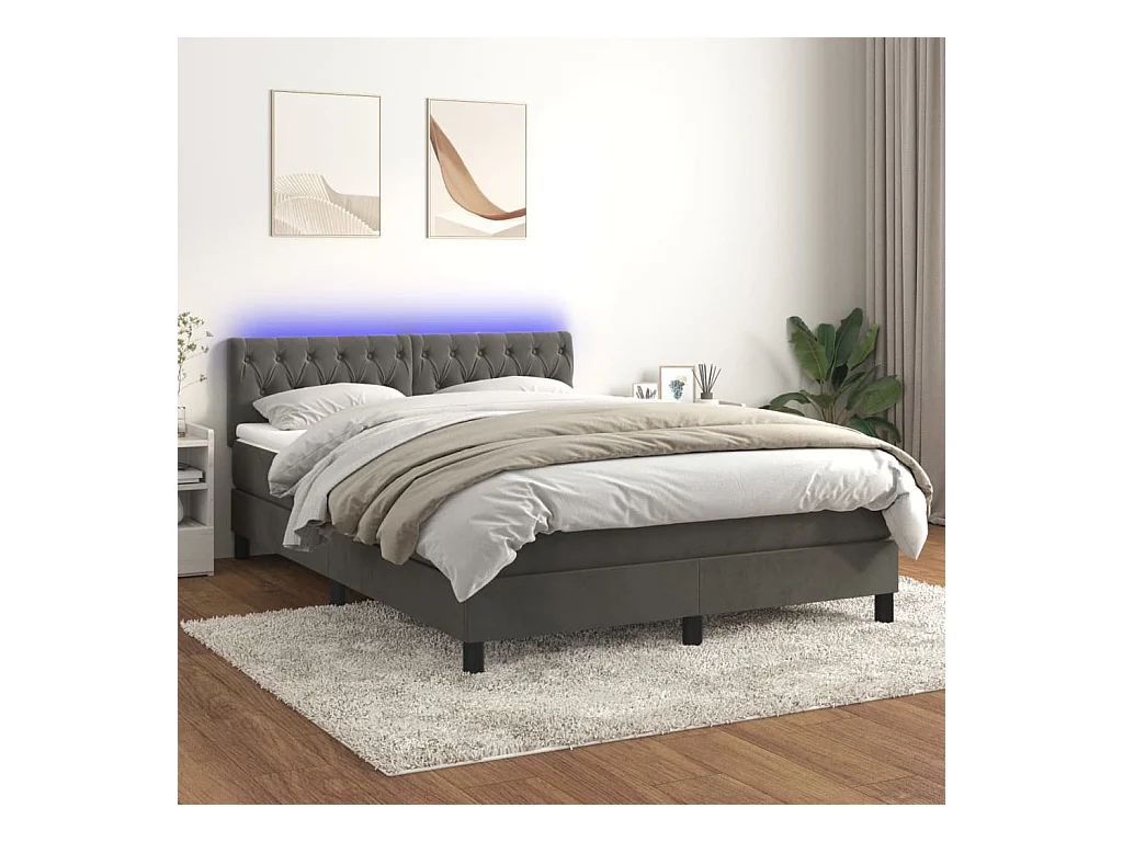 Sommier à lattes de lit avec matelas LED Gris foncé 140x200