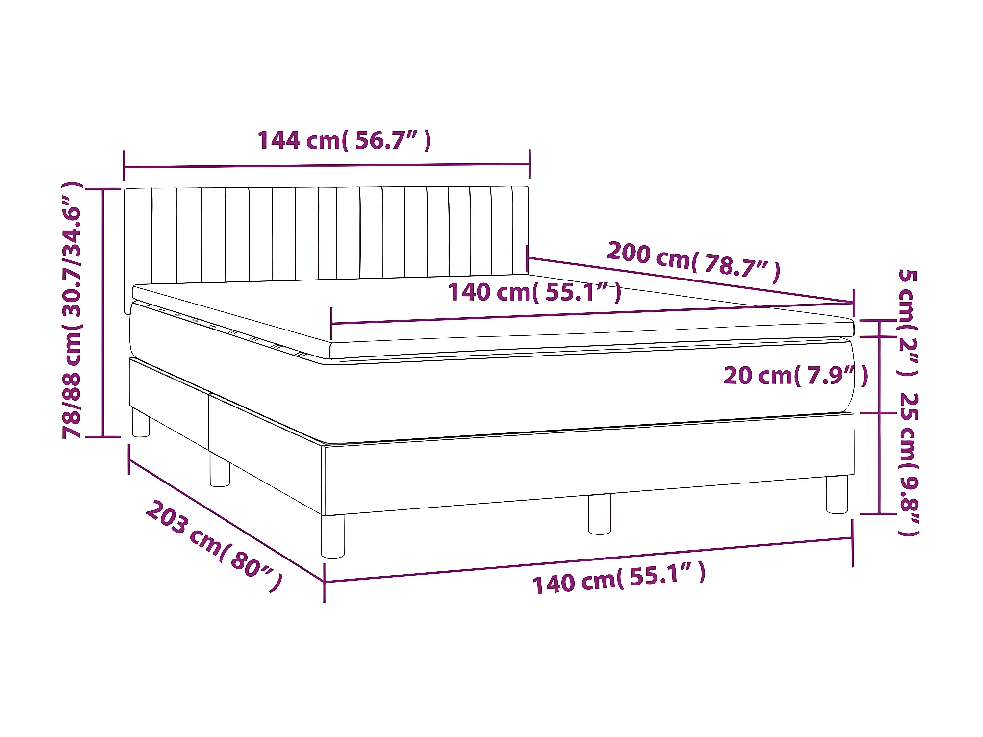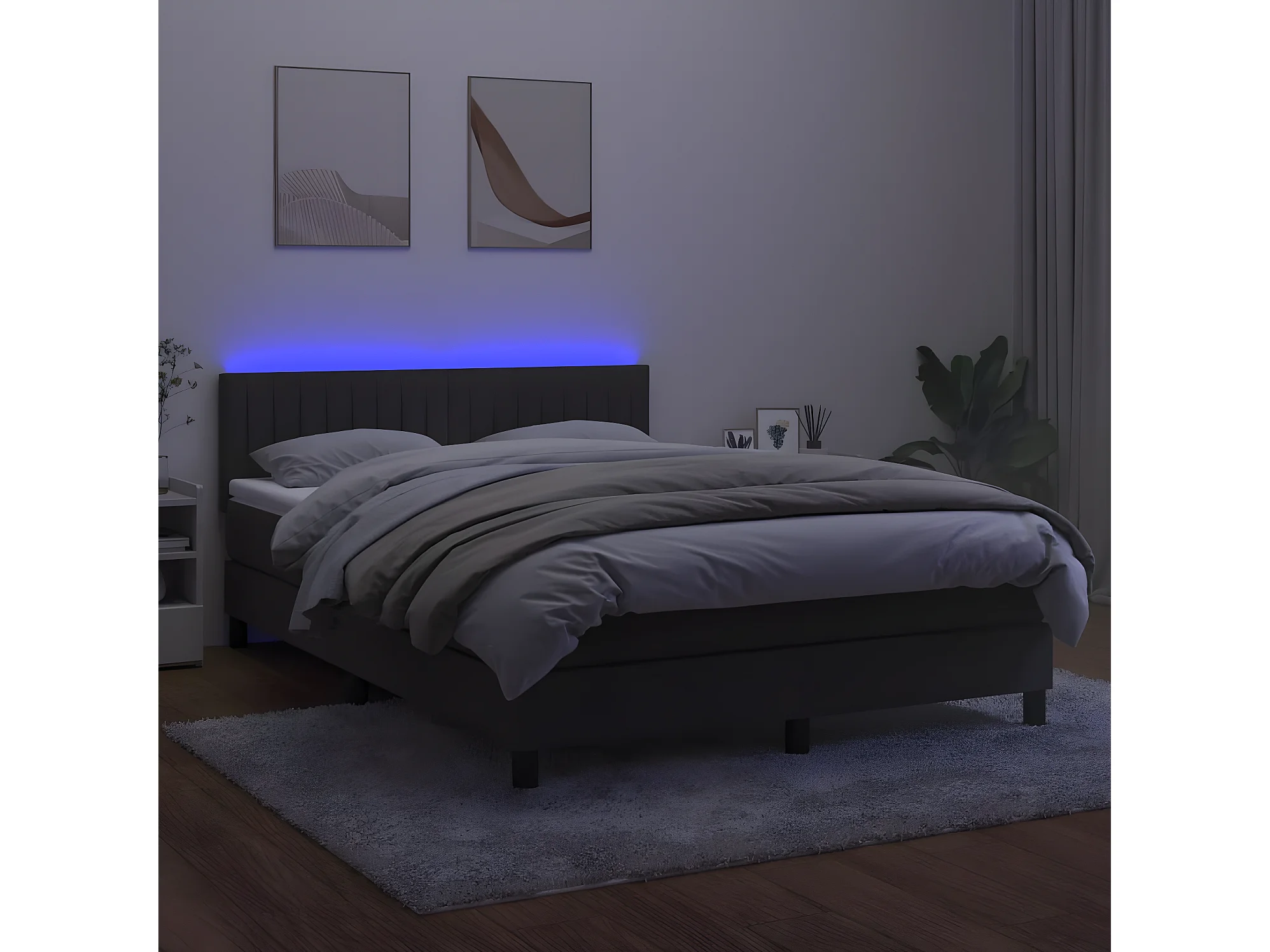 Sommier à lattes de lit avec matelas LED Gris foncé 140x200