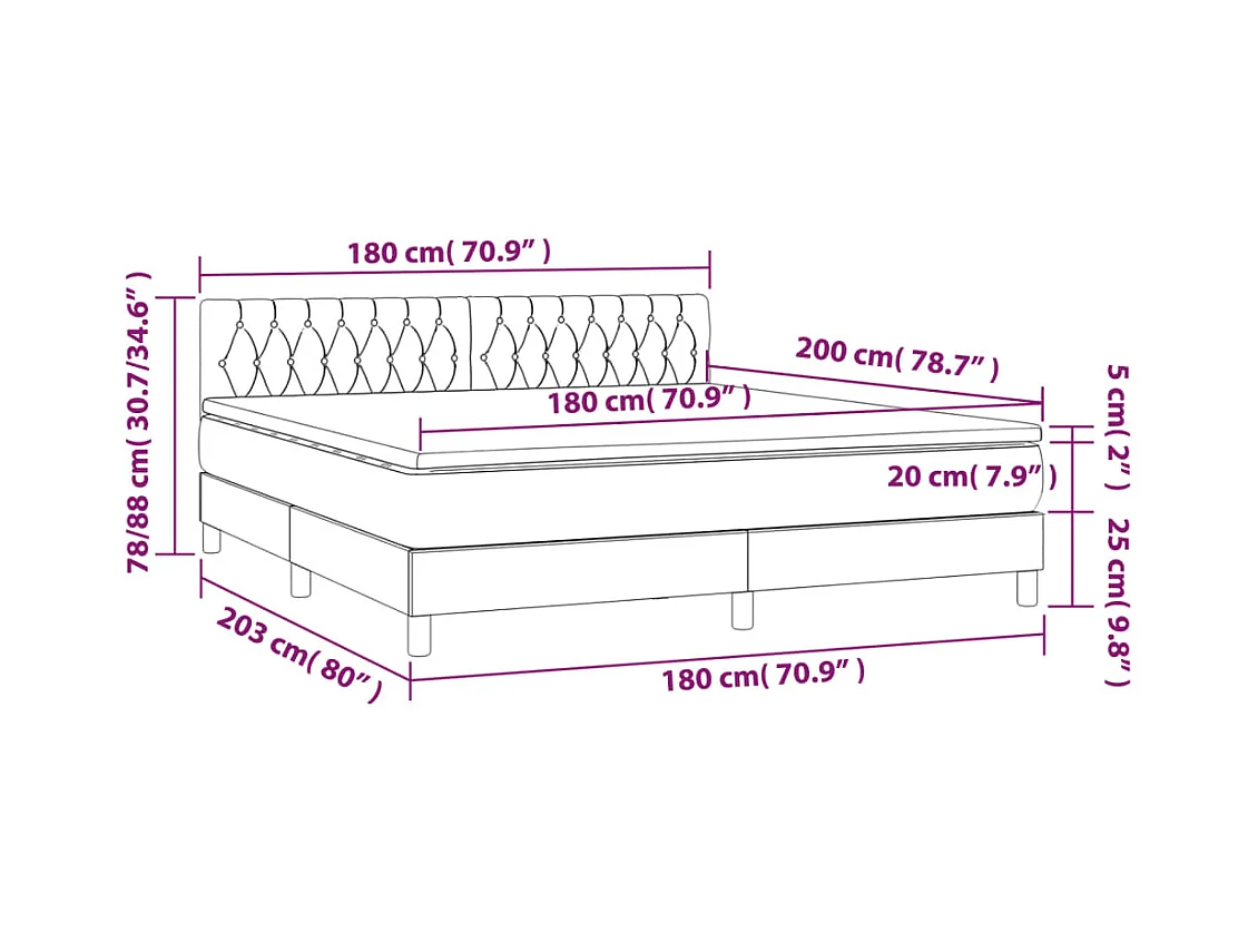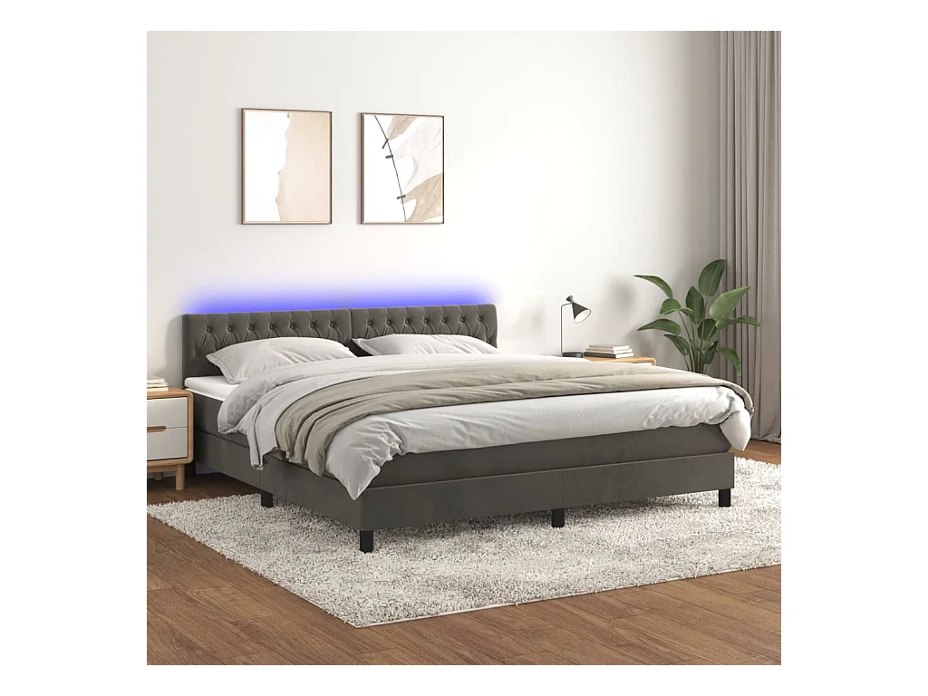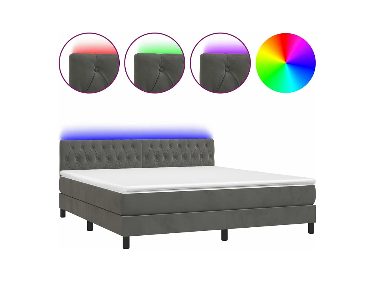 Sommier à lattes de lit avec matelas LED Gris foncé 180x200