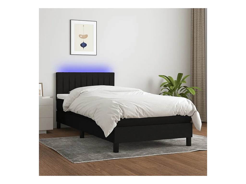 Sommier à lattes de lit avec matelas LED Noir 100x200 Tissu