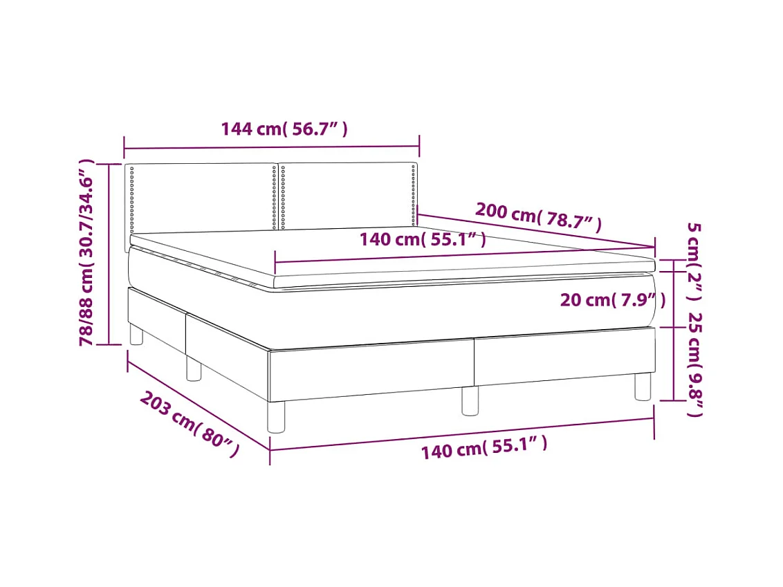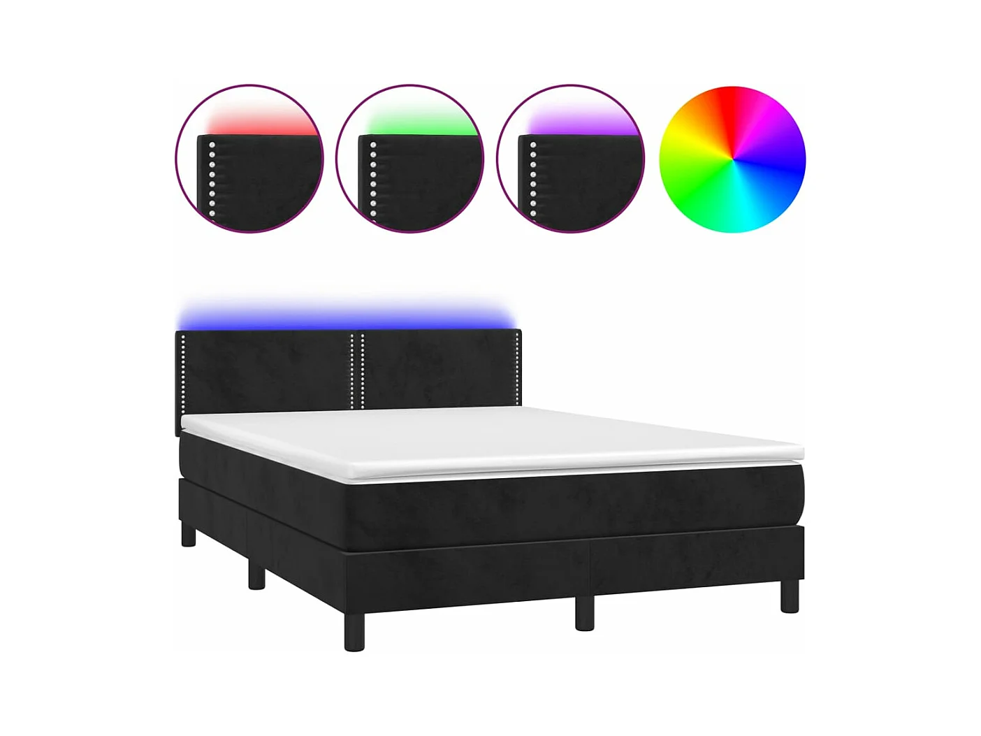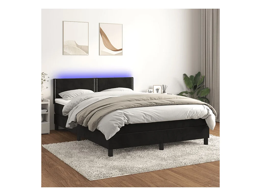 Sommier à lattes de lit avec matelas LED Noir 140x200