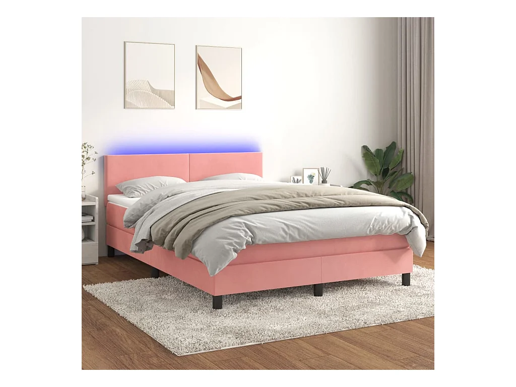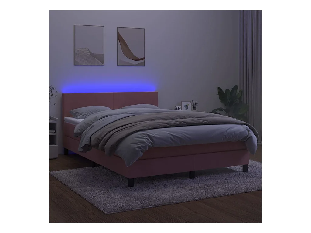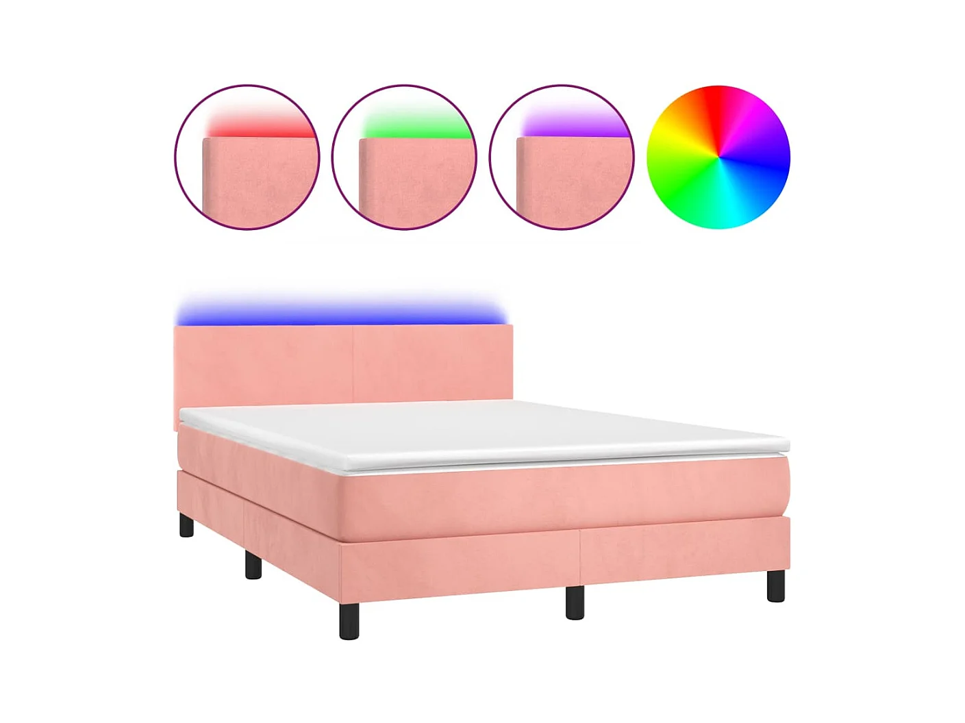 Sommier à lattes de lit avec matelas LED Rose 140x190 Velours