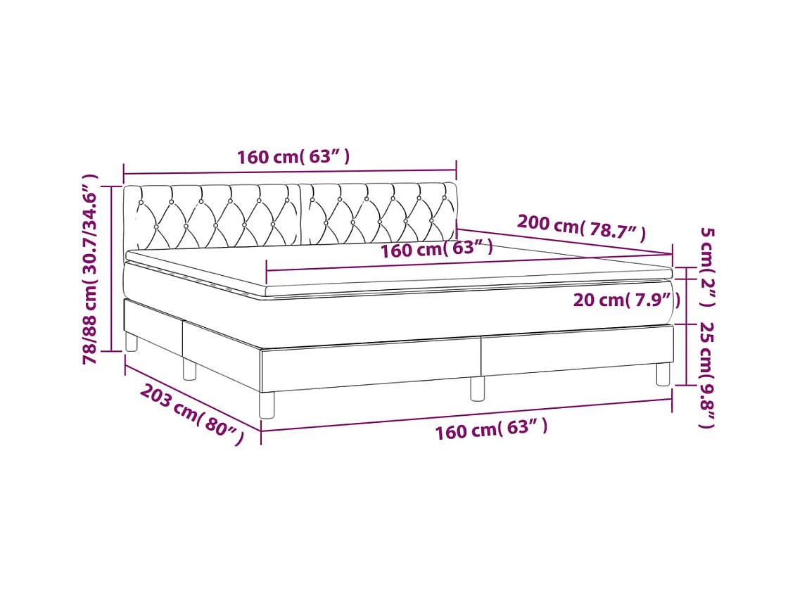 Sommier à lattes de lit avec matelas LED Taupe 160x200 Tissu