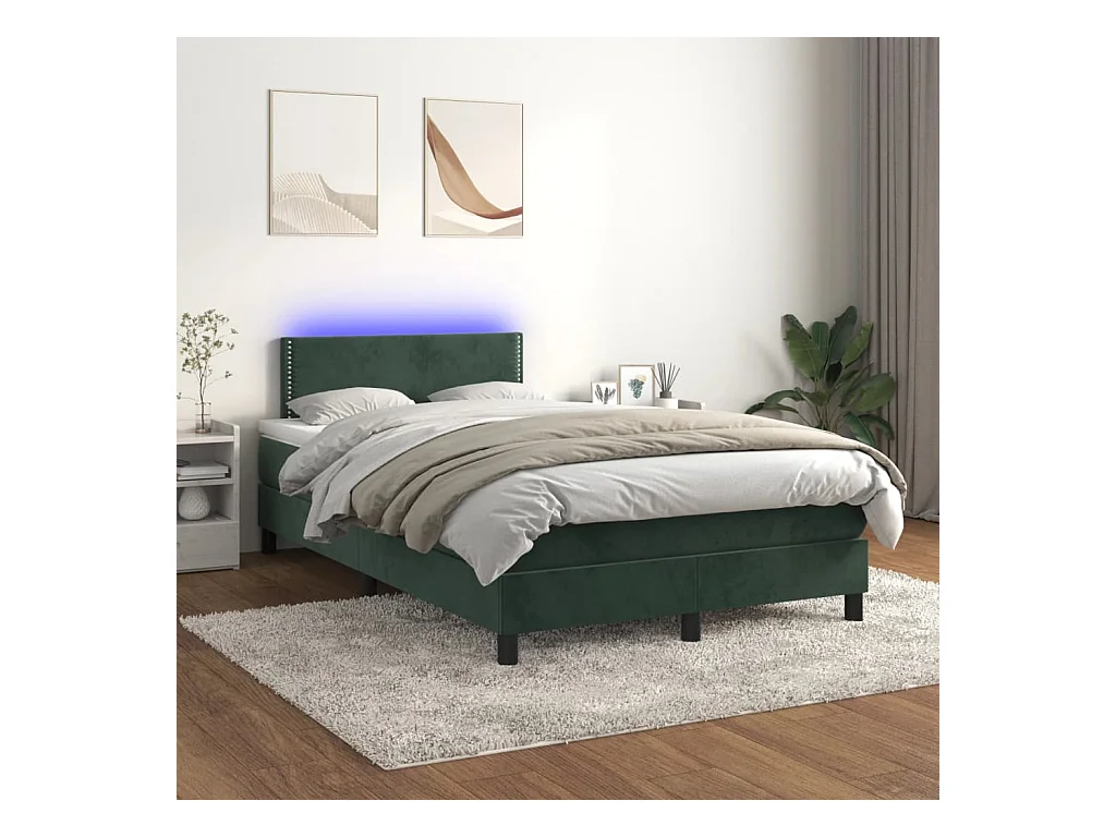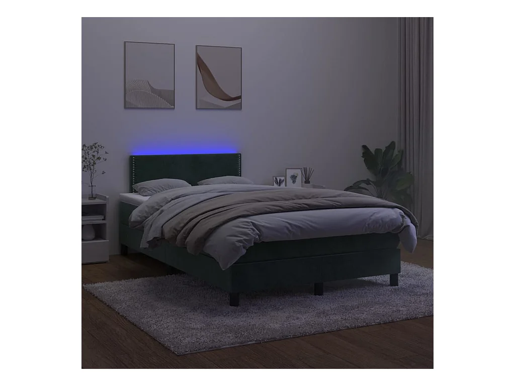 Sommier à lattes de lit avec matelas LED Vert foncé 120x200