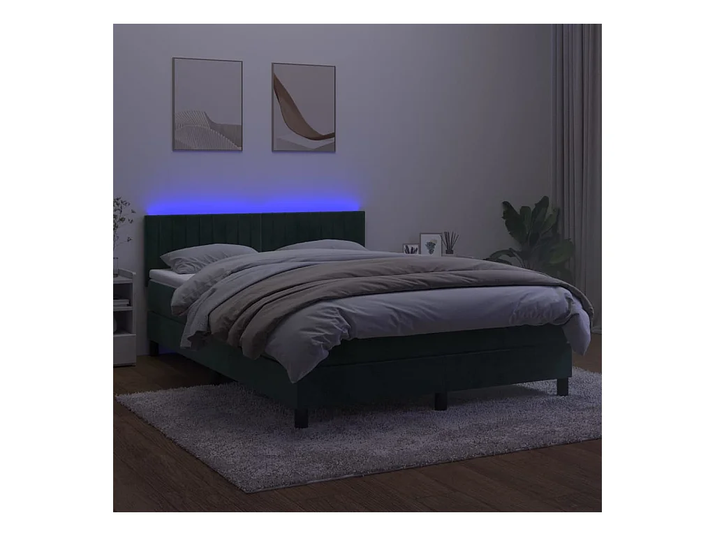 Sommier à lattes de lit avec matelas LED Vert foncé 140x190