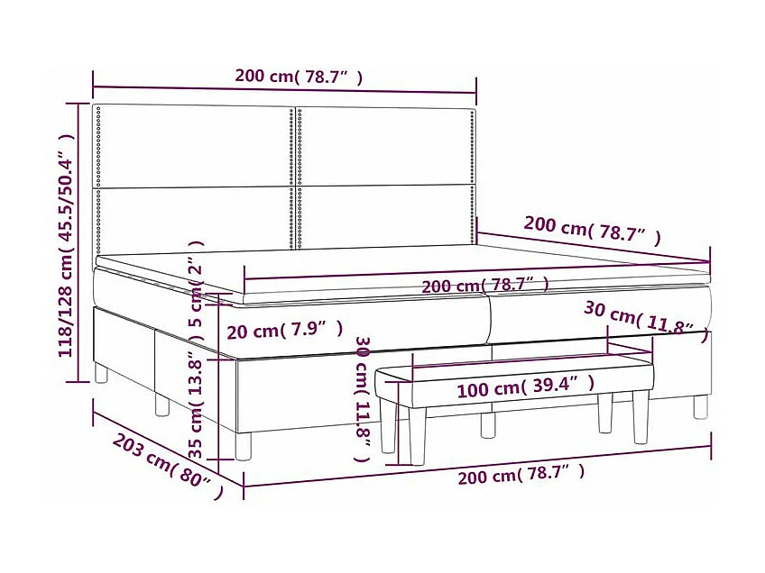 Sommier à lattes de lit avec matelas Marron foncé 200x200