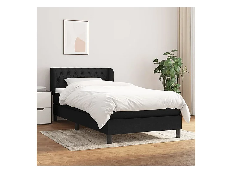 Sommier à lattes de lit avec matelas Noir 100x200 Tissu