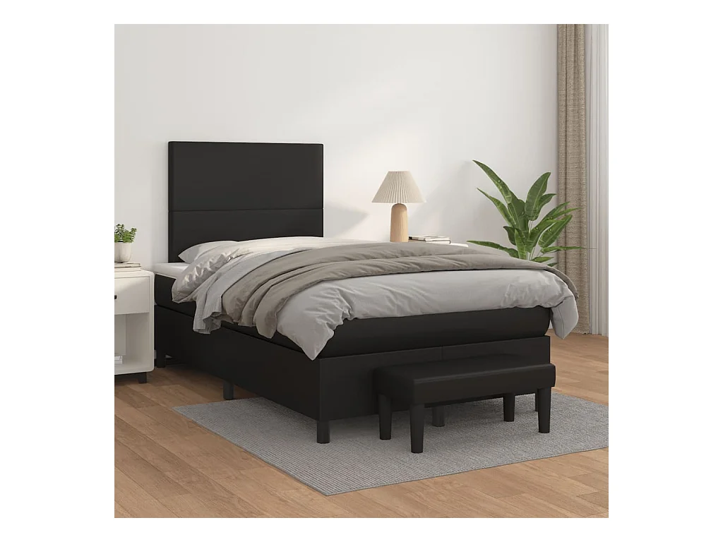 Sommier à lattes de lit avec matelas noir 120x190 similicuir