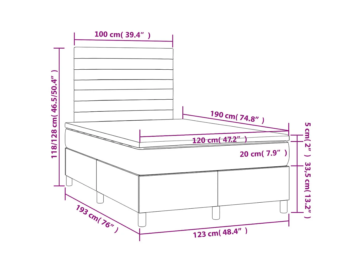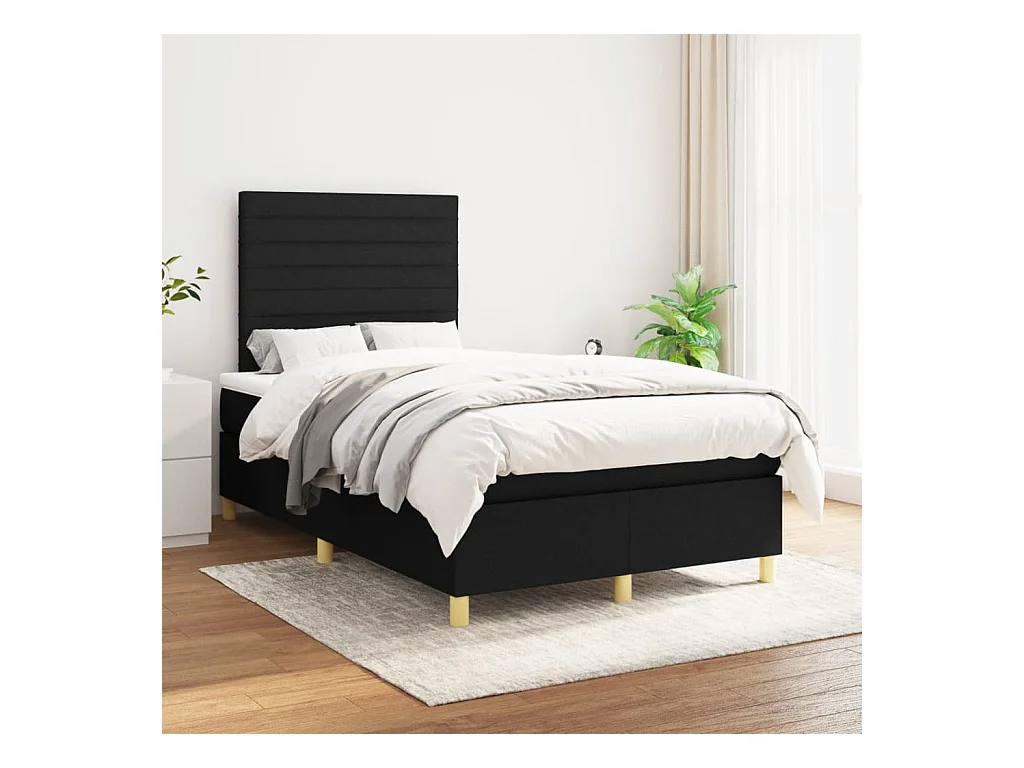 Sommier à lattes de lit avec matelas noir 120x190 tissu