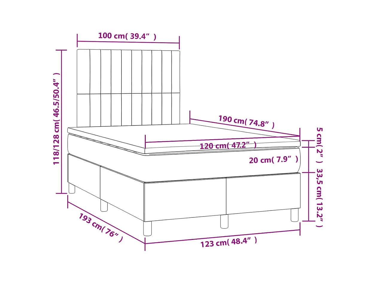 Sommier à lattes de lit avec matelas noir 120x190 tissu