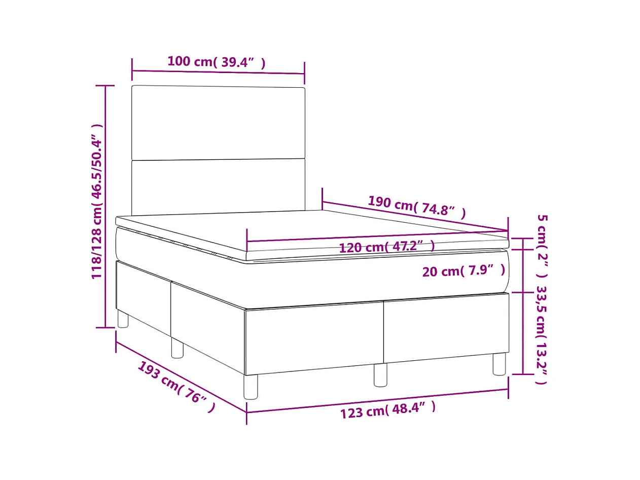 Sommier à lattes de lit avec matelas noir 120x190 tissu