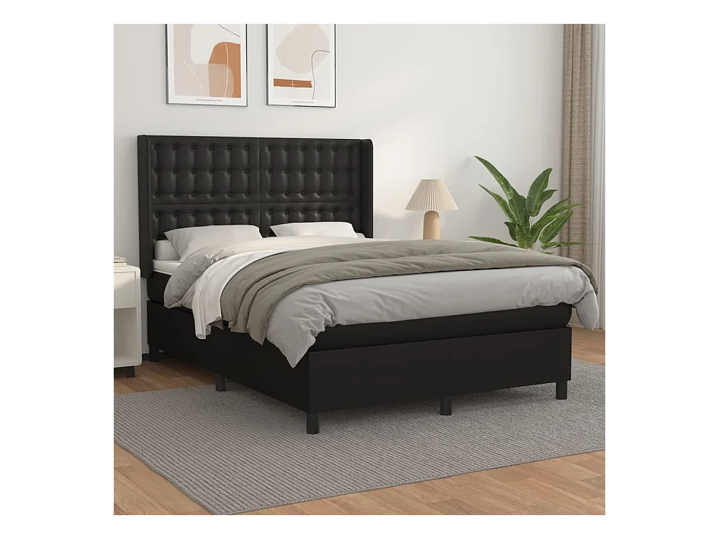 Sommier à lattes de lit avec matelas Noir 140x200 Similicuir