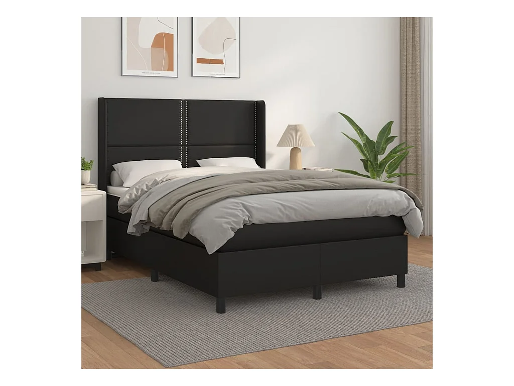 Sommier à lattes de lit avec matelas Noir 140x200 Similicuir