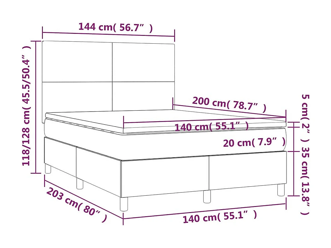 Sommier à lattes de lit avec matelas Noir 140x200 Tissu