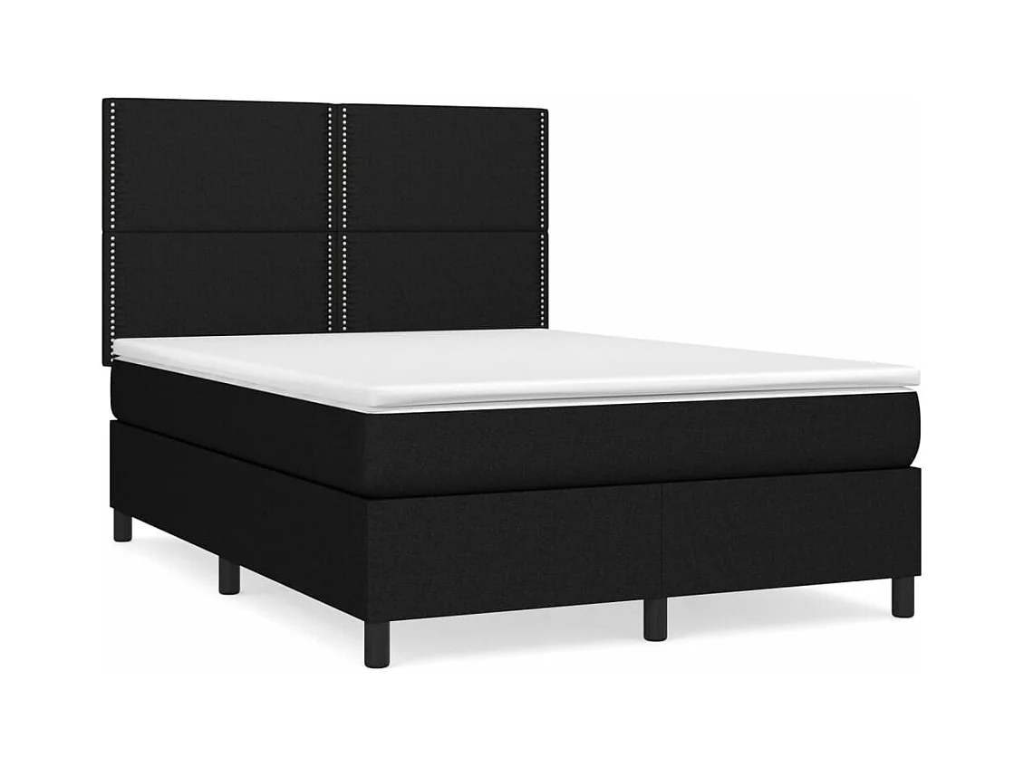 Sommier à lattes de lit avec matelas Noir 140x200 Tissu