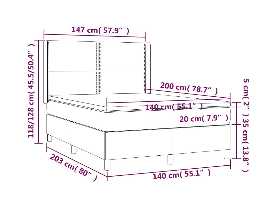 Sommier à lattes de lit avec matelas Noir 140x200 Tissu