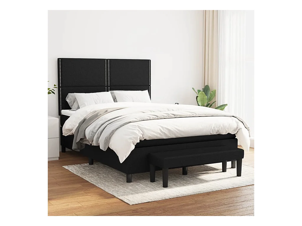 Sommier à lattes de lit avec matelas Noir 140x200 Tissu